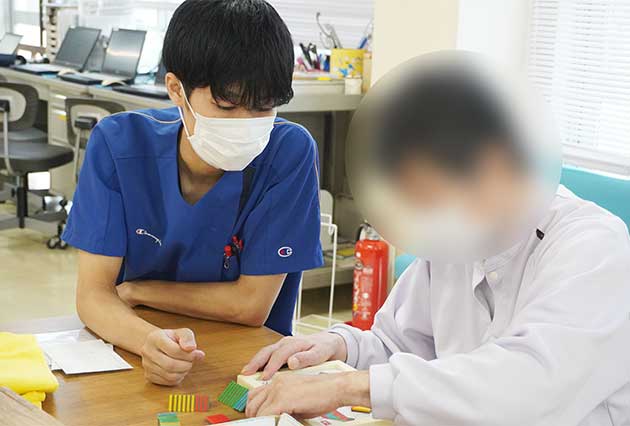 着替えやトイレといったセルフケア、家事、仕事、趣味活動など日常のあらゆる「作業(生活行為)」が再び行える様に訓練をします。