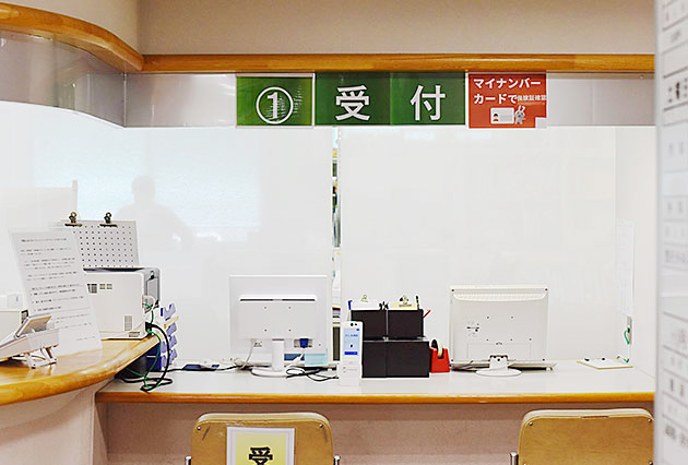 受付では毎月一度、「マイナンバーカード」または「健康保険証」の提示をお願いしておりますので、ご協力をお願いします。